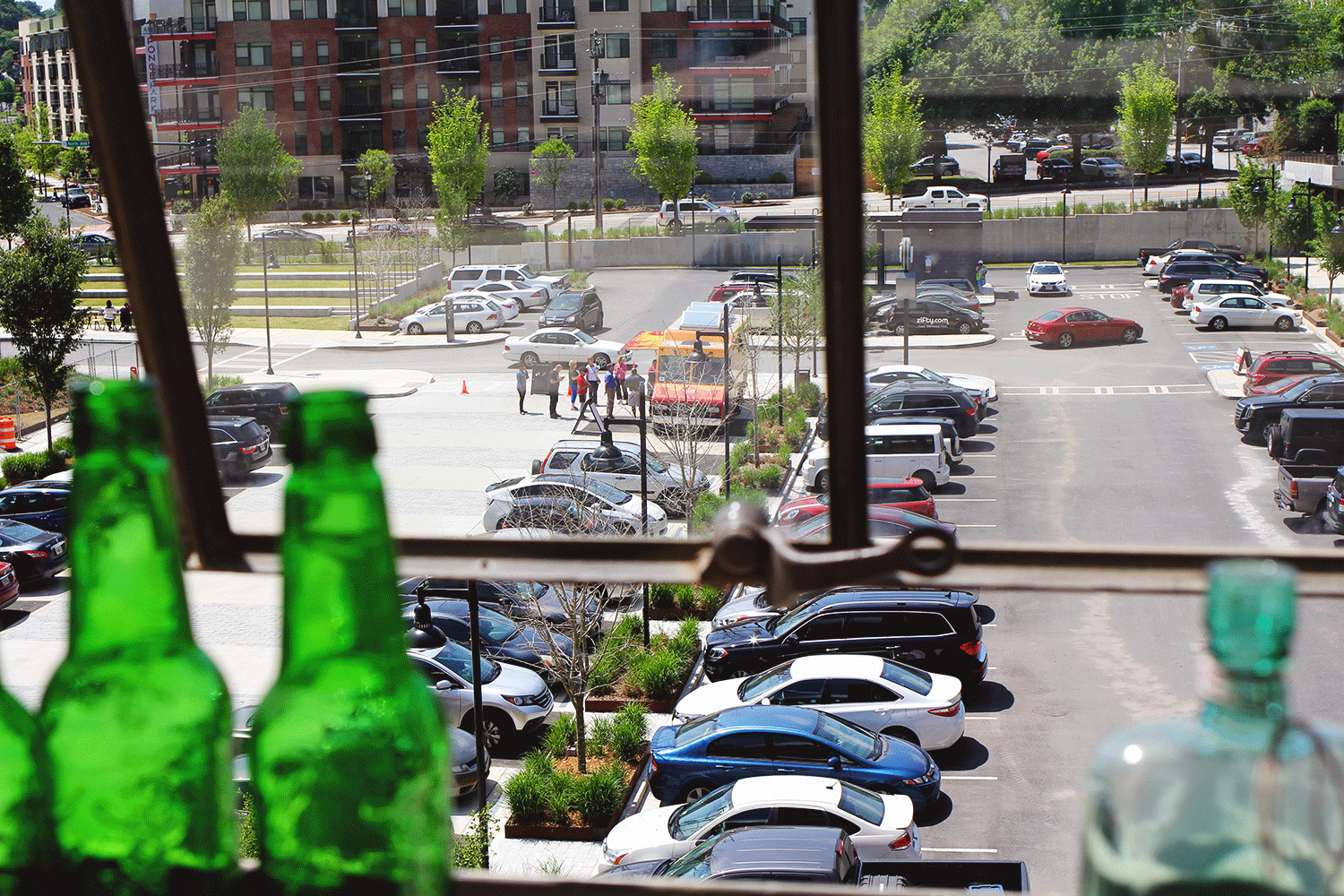 Here's my view of the surface parking lot, but more importantly, the spot where food trucks park daily. I'm trying to be healthy, so I've been restraining myself from moseying down to the trucks, but they are awfully tempting...